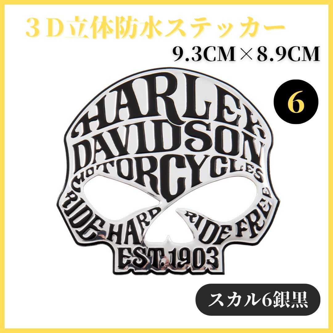 - 【送料無料】ハーレーダビッドソンHarleyDavidsonスカル3D立体ステッカーデカール バイク カスタム 防水仕様 6銀黒
