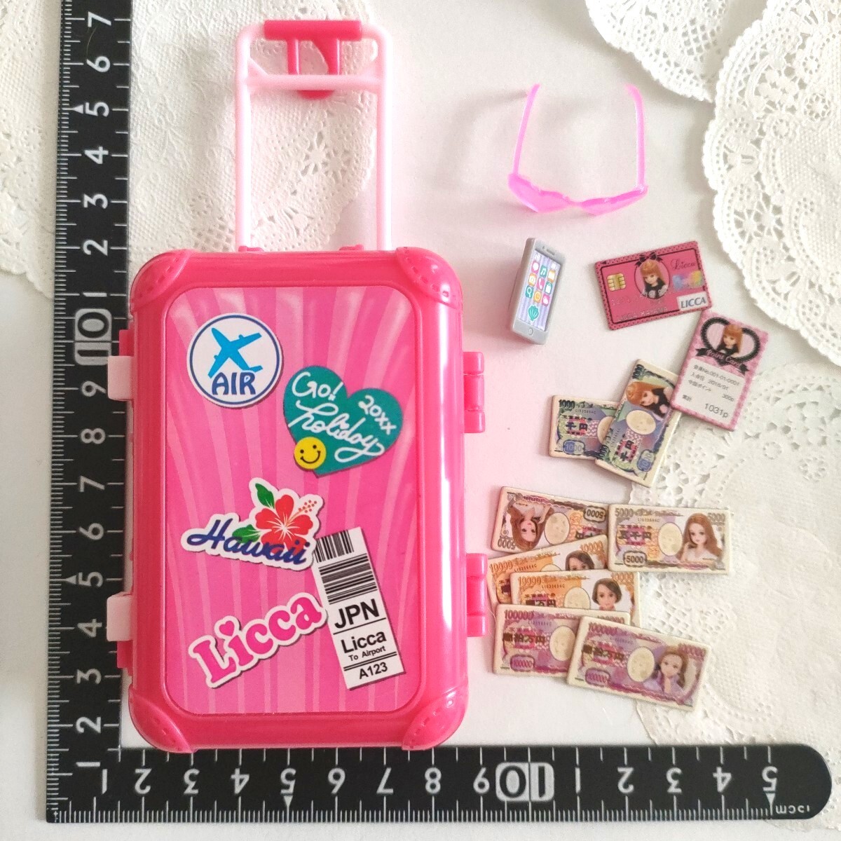 - 3r0406 ドール用 ピンク キャリー スーツケース 携帯電話 カード おもちゃのお金 ピュアニーモ リカちゃん ブライス 1/6ドール