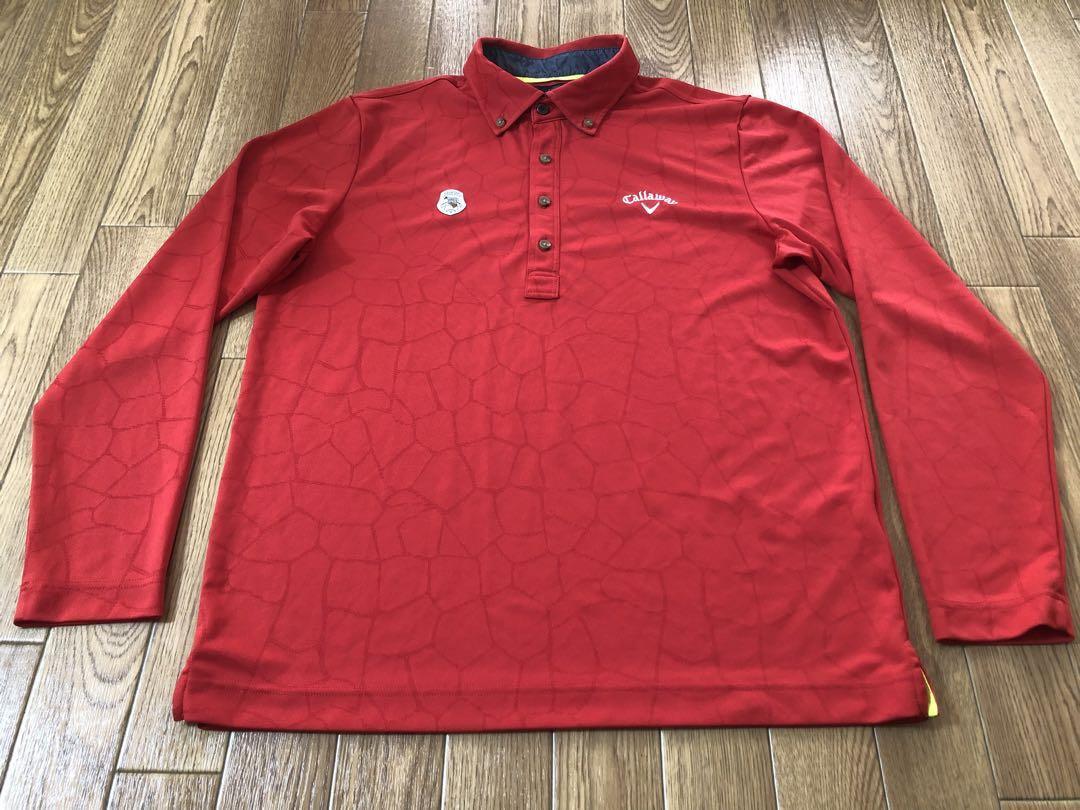 > キャロウェイ Callaway☆ジャガード キリン ボタンダウン 速乾 ポロシャツ 長袖☆LL