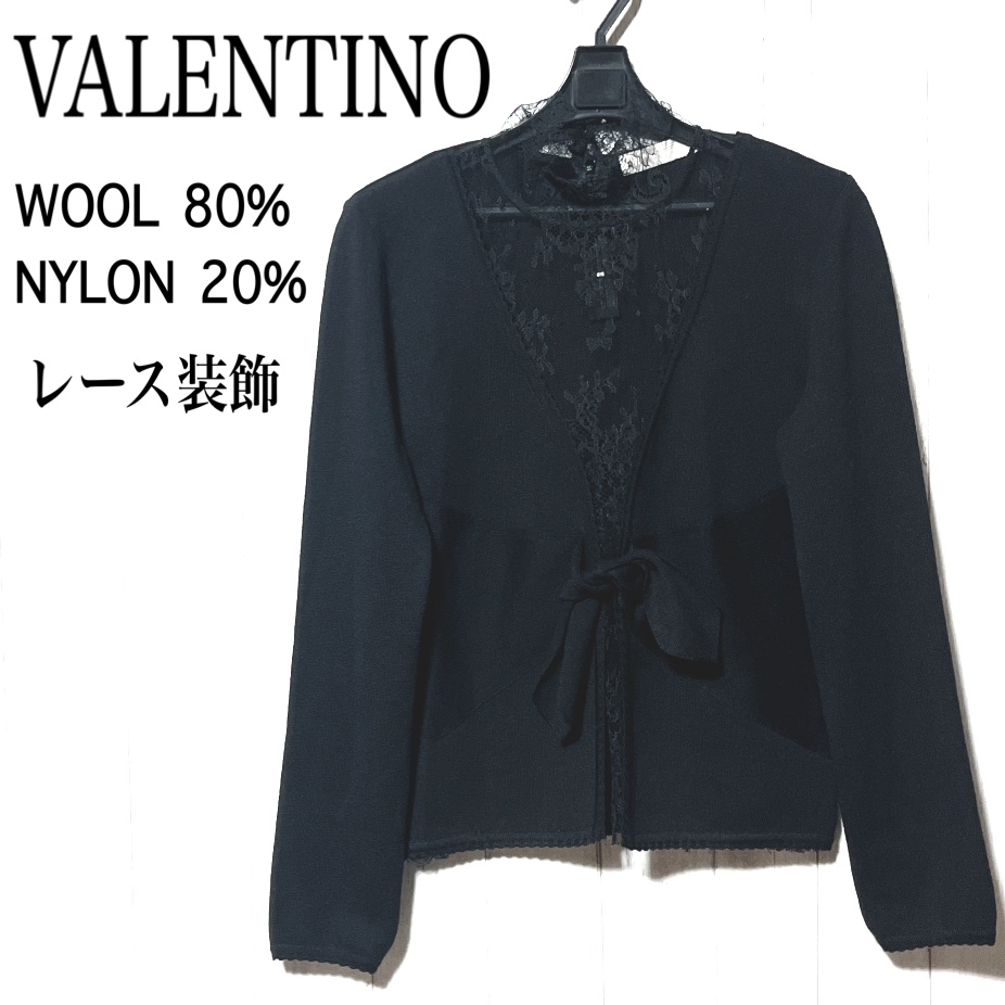 > ヴァレンティノ レース装飾 デザインニット VALENTINO ウール ナイロン レイヤード カーディガン風 セーター イタリア製