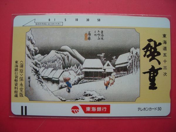 - 東海道五十三次 広重 蒲原 東海銀行 110-13300 未使用テレカ