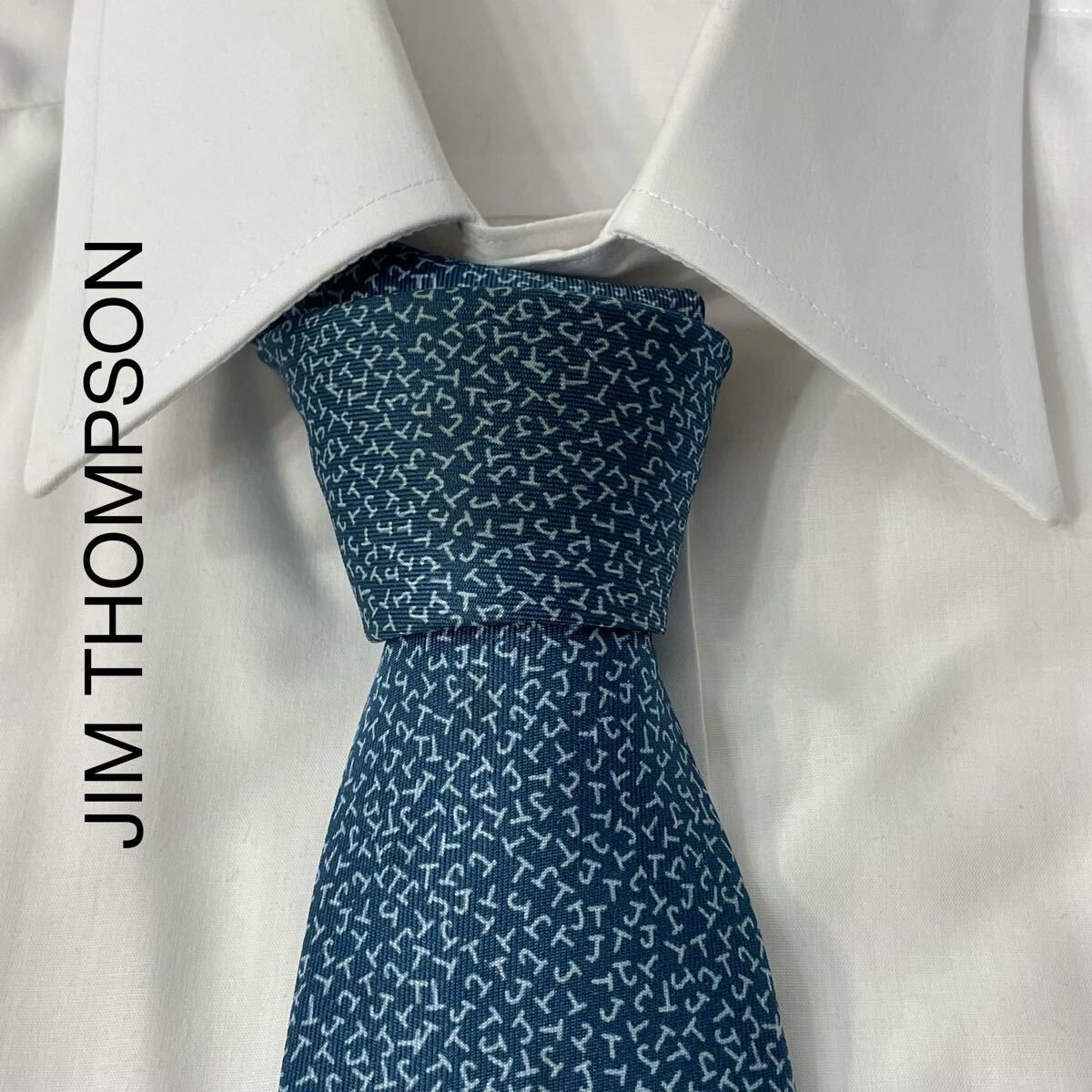 - JIM THOMPSON ジムトンプソン 英字 パターン柄 シルク ネクタイ ブルーグリーン TG463