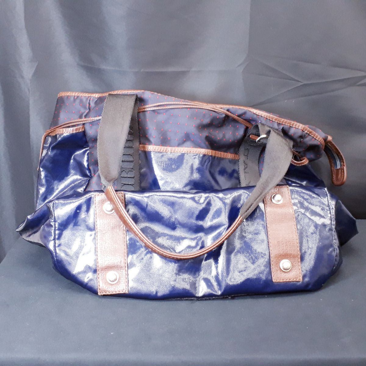 - 【中古】 Orobianco オロビアンコ トートバッグ ブルー ネイビー エナメル ロゴ ドット 水玉 大容量 収納 ファッション雑貨(dc1)