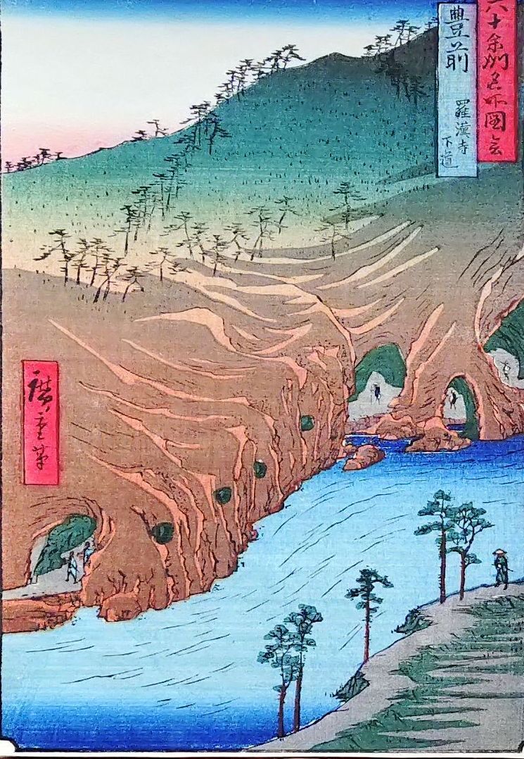 - f24112217〇広重 彩色木版画 六十余州名所図会 豊前 羅漢寺下道 大正時代〇和本古書古文書