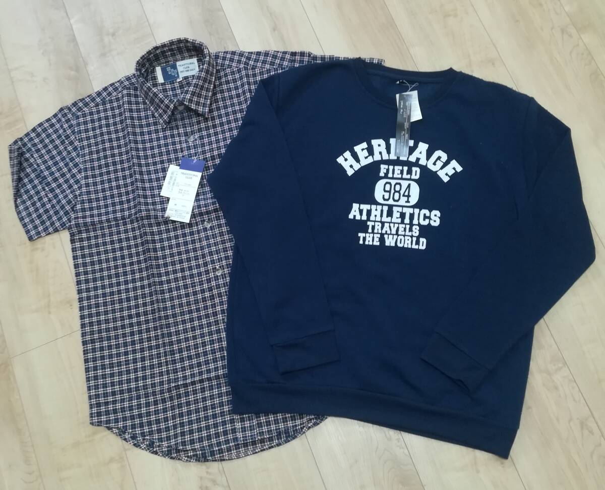 - ★タグ付き未使用★ メンズ半袖シャツ+トレーナーセット TCF半袖シャツM 裏起毛トレーナーL アメカジ