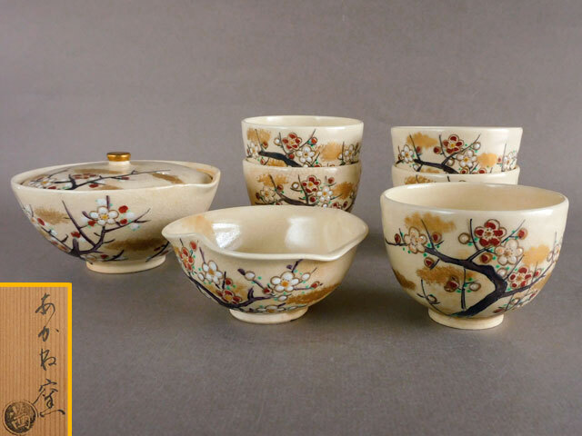 - あかね窯 京薩摩 梅画 茶器 煎茶器揃 急須 冷まし 煎茶碗 五客