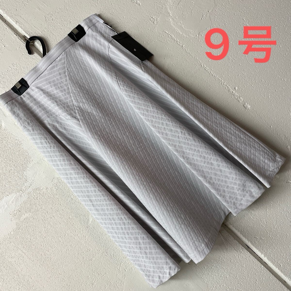 - 9号サイズ日本製切り替えストライプスカート ライトグレー
