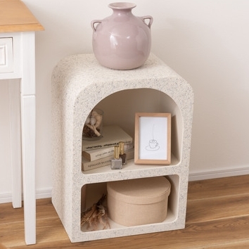 - シェルフ 棚 飾り棚 2段 繊維板 おしゃれ シンプル シック モダン テラゾー柄 石目 MAR-12WH