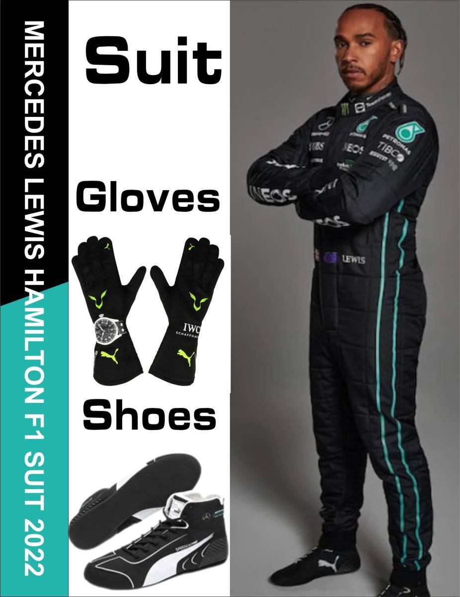 > 海外 高品質 送料込み ルイス・ハミルトン F1 2022年 レーシングスーツ シューズ グローブ 豪華3点セット サイズ各種 レプリカ