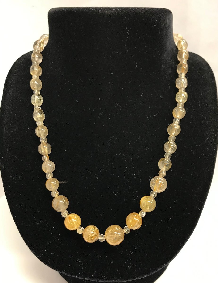 > qoj.Z7007 SILVER シルバー 天然クォーツ ルチル入り ネックレス 約11.0mm~4.0mm玉 ソーティング付き