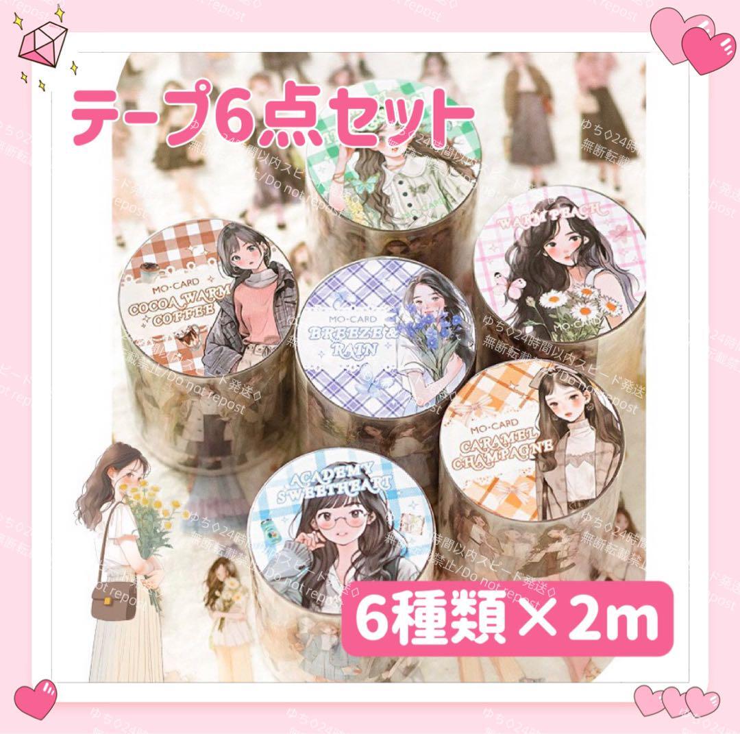 - シール ロールテープ マスキングテープ 2m 6種 PET 防水 デコ コラージュ アレンジ 素材 コレクション 可愛い ④