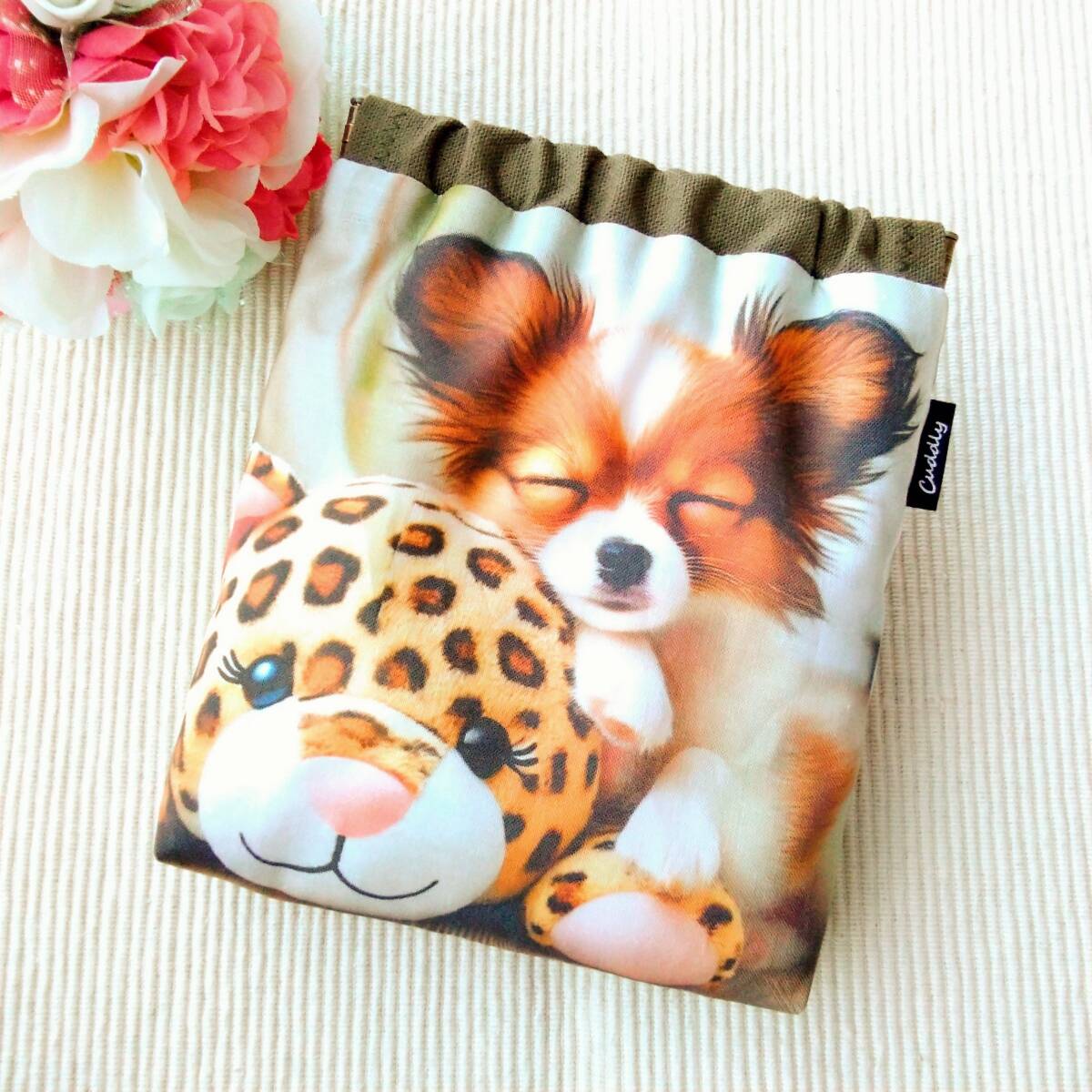 - ハンドメイド バネポーチ ぬいぐるみ パピヨン パネル生地