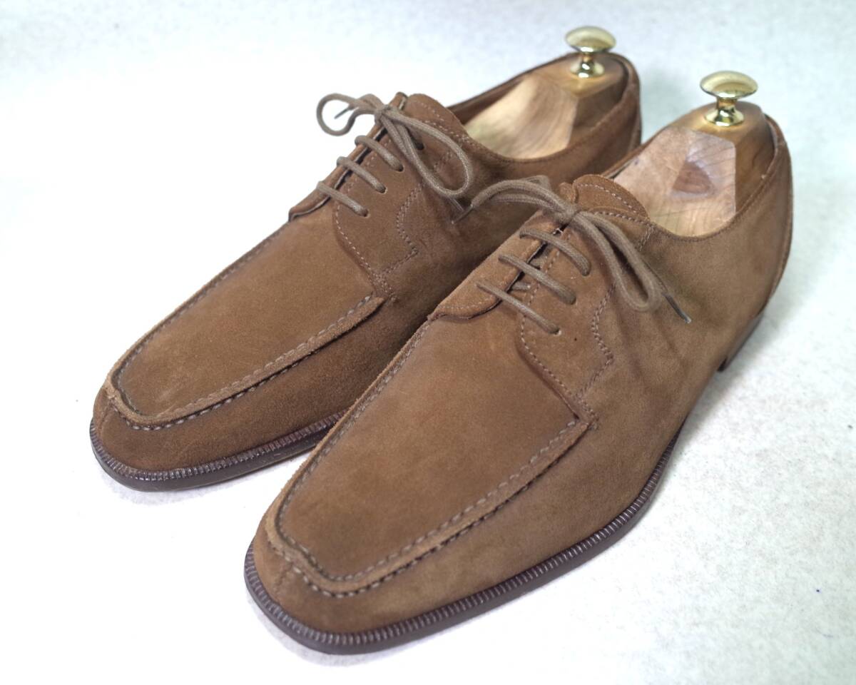 スエードレザーアッパー 外羽根4アイレット モックトゥ/スプリットトゥ レザーシューズ。