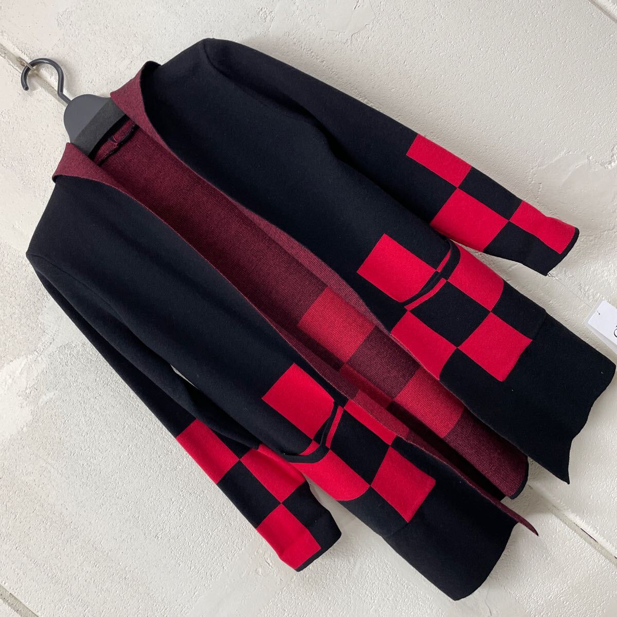 - ニットパーカートッパーカーディガン黒赤
