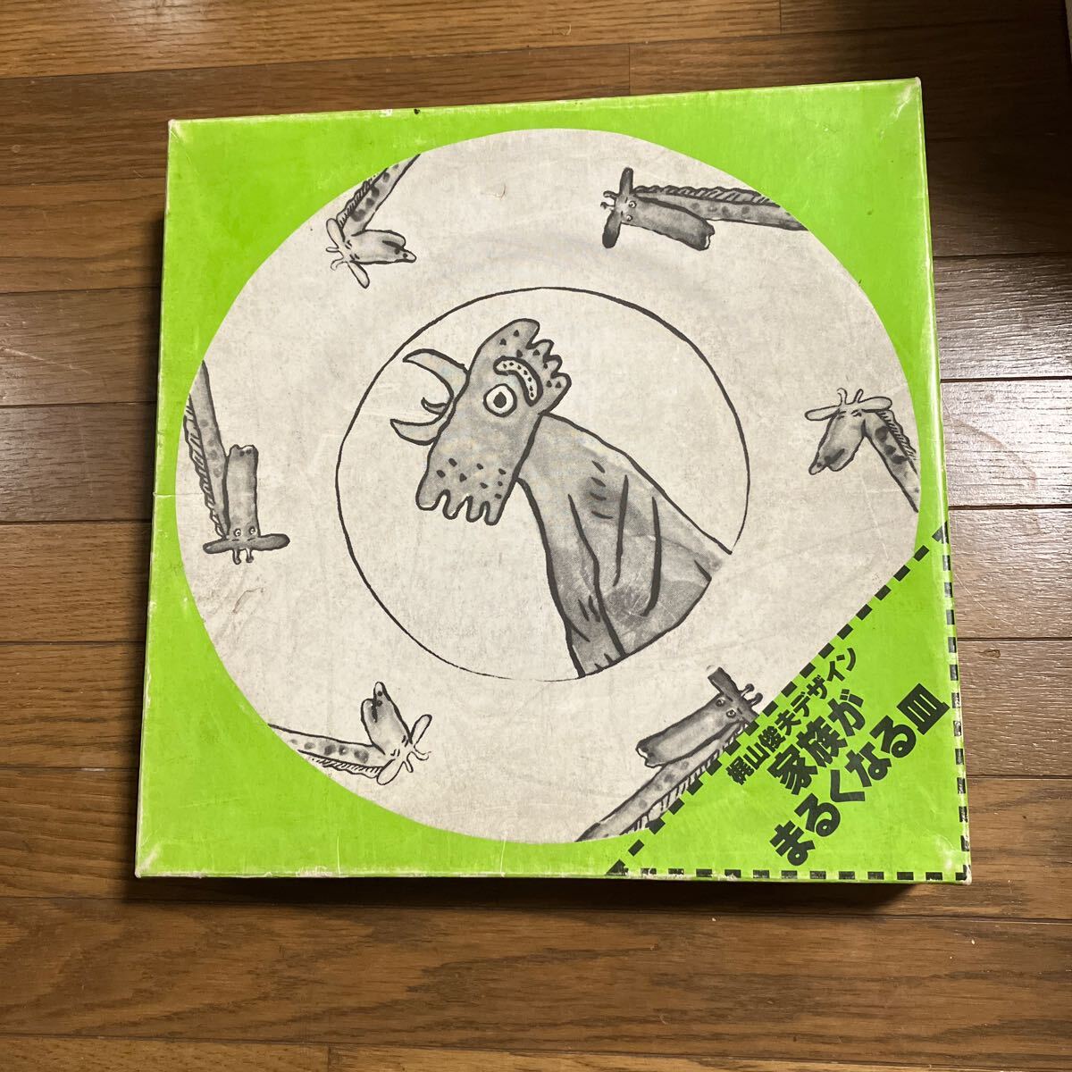 > 中古保管品★明治屋 大皿 絵本作家 梶山俊夫デザイン 家族がまるくなる皿 キリン・ニワトリ 絵皿★