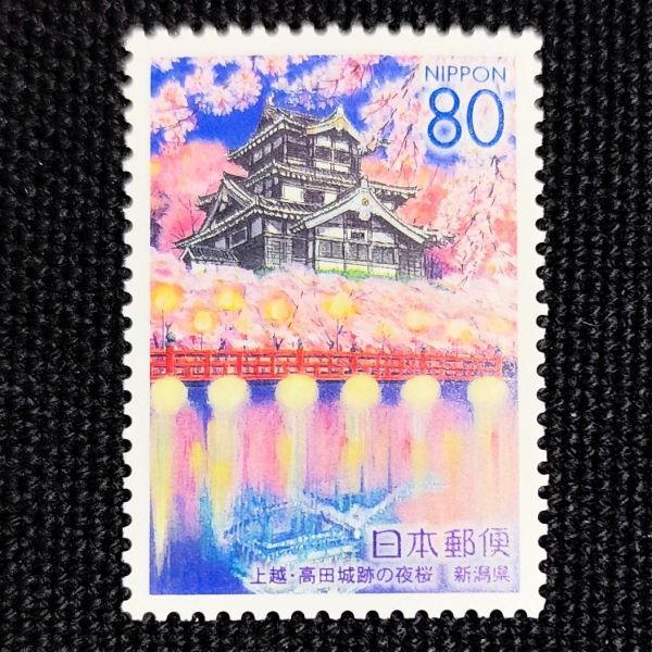 - [24112804] ふるさと切手【新潟県・上越 高田城跡の夜桜】単片「お堀に映る高田城三重櫓と夜桜」平城 三重櫓 80円 2001年発行 美品