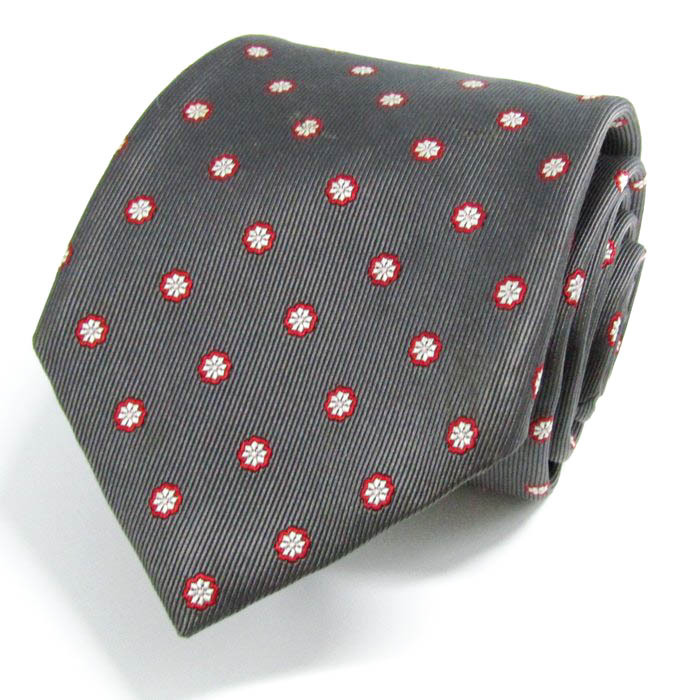 > コムサメン ブランド ネクタイ ドット 花柄 小紋柄 シルク PO メンズ グレー COMME CA MEN