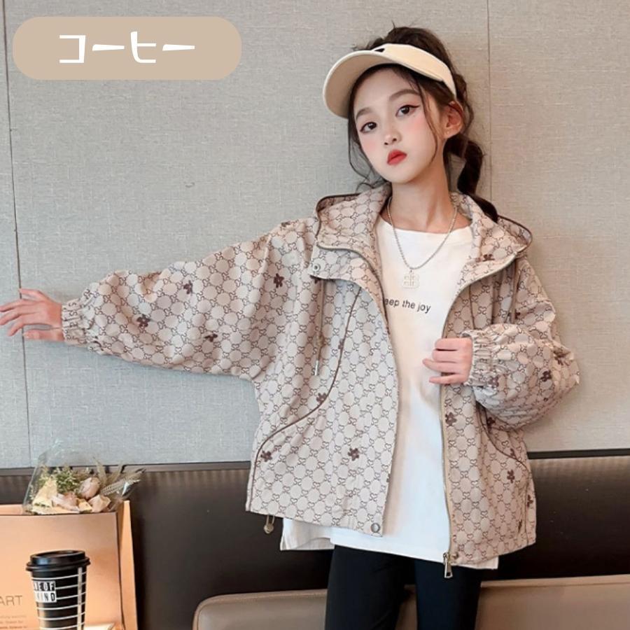 - コーヒー 120cm マウンテンパーカー フード付き 長袖 ジャケット 羽織り ライトアウター ゆったりサイズ 女の子 ガールズ 韓国子供服