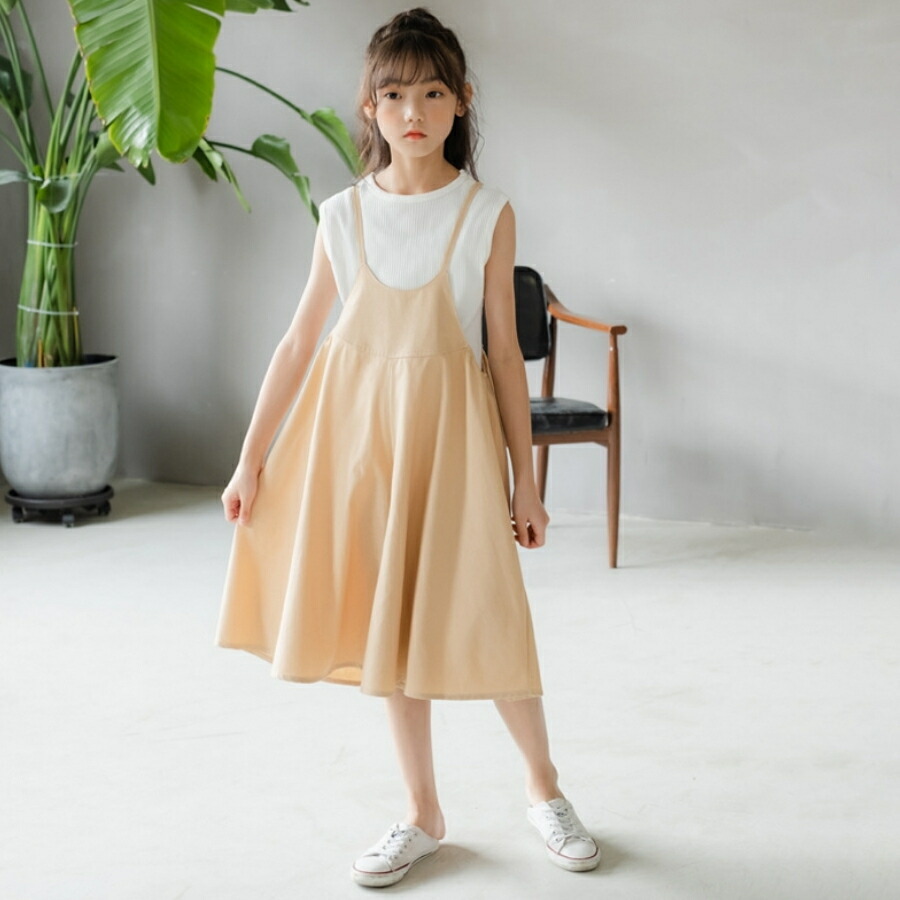 > ベージュ 120cm ワイドレッグ オーバーオール サスペンダースカートパンツ カジュアル サロペット 女の子 キッズ ジュニア