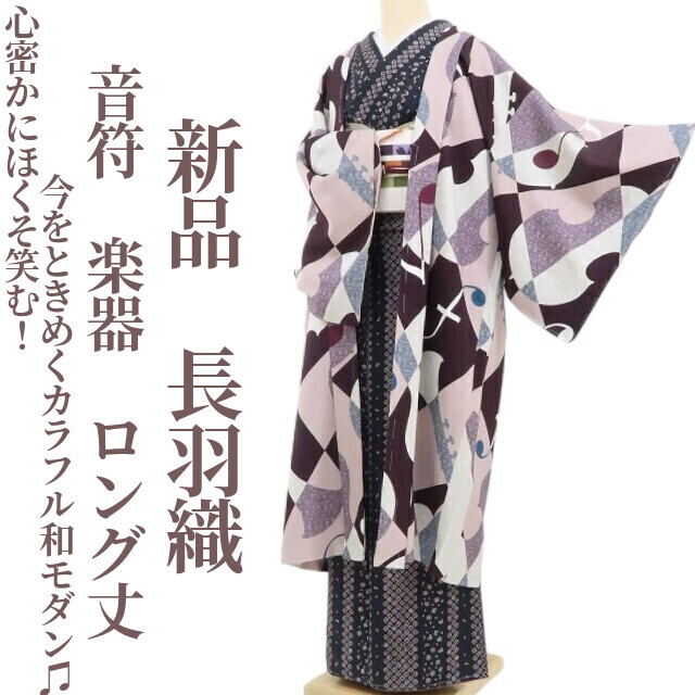 - tomihisa 新品 音符 楽器 着物 正絹“心密かにほくそ笑む!今をときめくカラフル和モダン”仕付け糸付 ロング丈 長羽織 4772