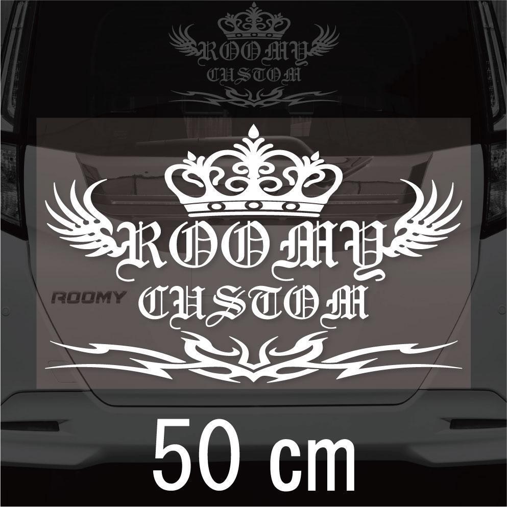 - 50㎝ ルーミーカスタム 王冠 羽 トライバル カッティングステッカー 転写シール 白色