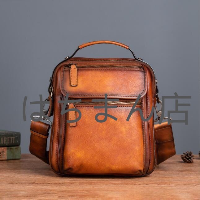 - 本革 ショルダーバッグ メンズ アンティーク 斜め掛け鞄 メッセンジャーバッグ 2室 ヌメ革 本革 牛革 レザー 縦型 iPad収納