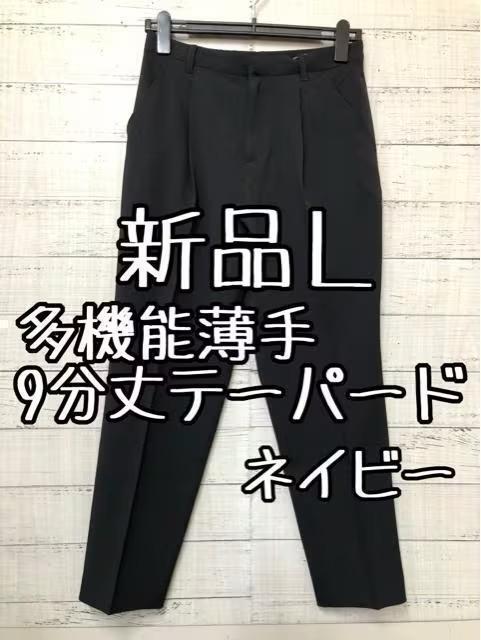 - 新品☆L♪紺系♪多機能薄手きれいめ9分丈テーパードパンツ♪☆s528