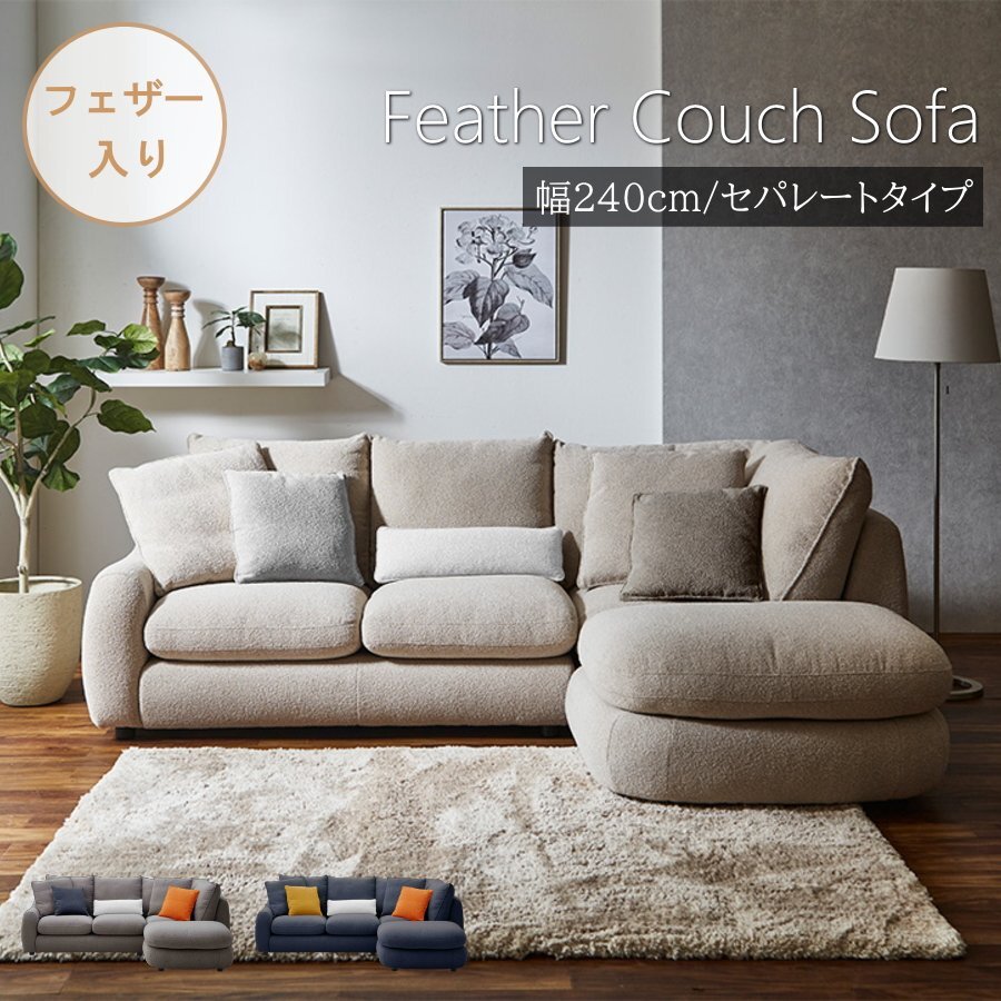 > ソファー カウチソファ フェザー入り 3人掛け 3人用 オットマン セパレート 左右カウチ対応 おしゃれ■送料無料(一部除)新品未使用■I8G1