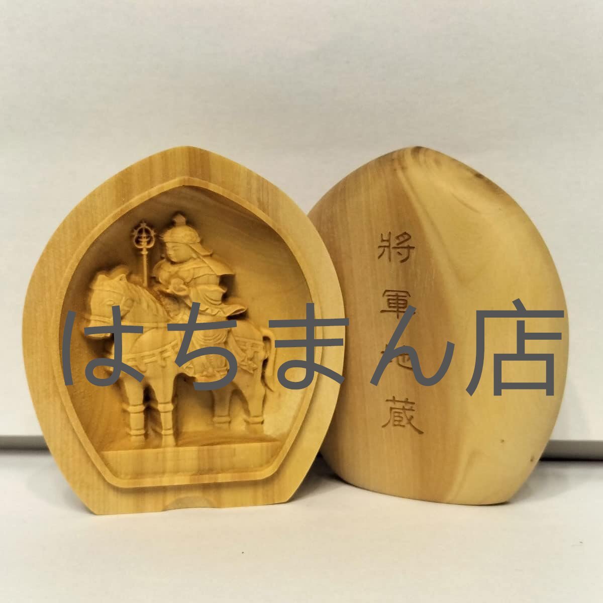 - 木彫りの仏像 将軍地蔵【守り本尊】 柘植製 騎馬像 懐中仏(高さ5.3cm、幅5cm)(将軍地蔵)