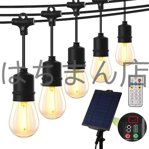 - ソーラーストリングライト 22m 防雨型 夜間自動点灯 4つの調光モード PC素材 電球色 2700k 20+2個 LED電球