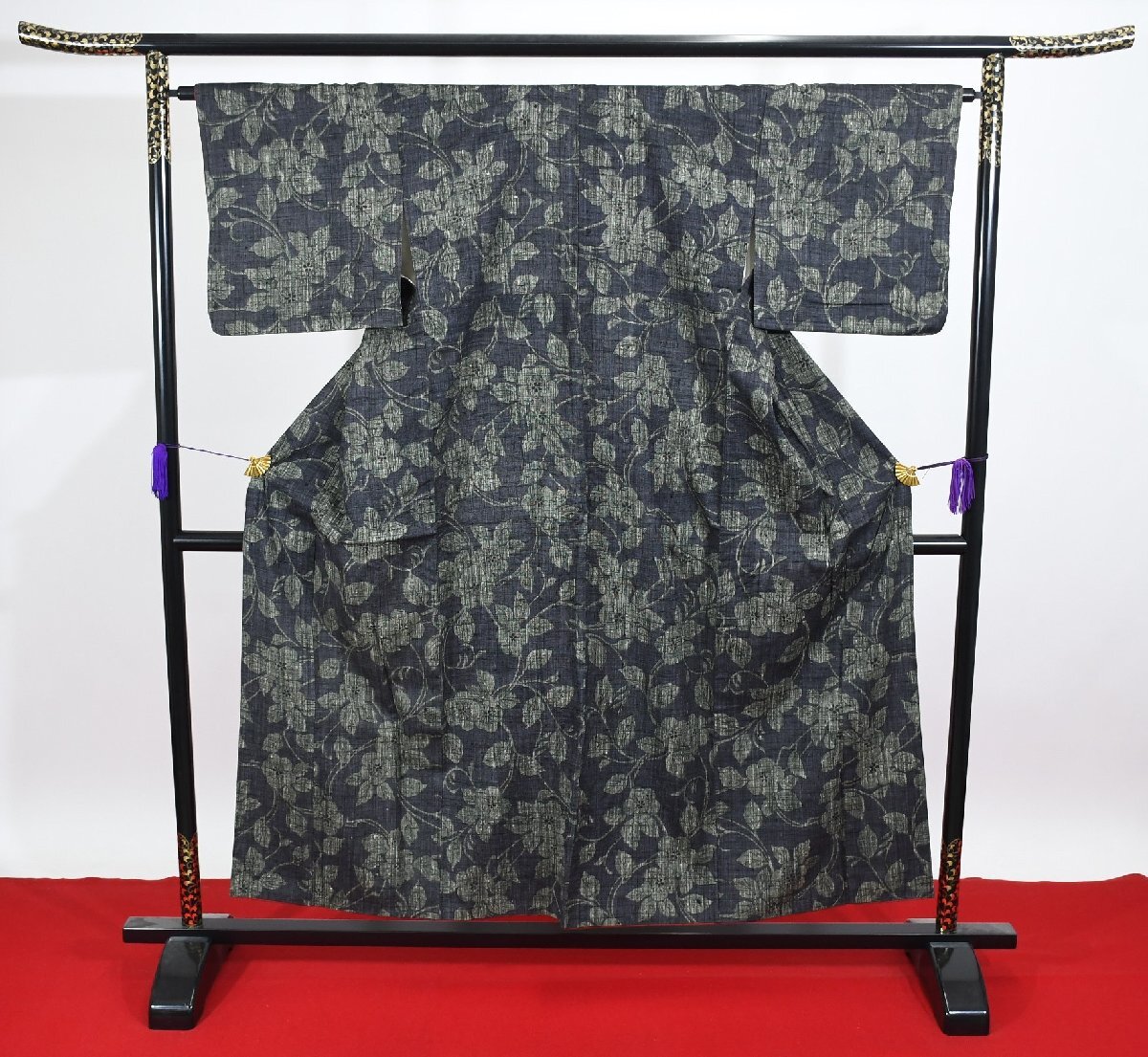 - 紬 つむぎ 花 身丈147cm 裄丈65cm ★着物 pb-3110 桜庭呉服店