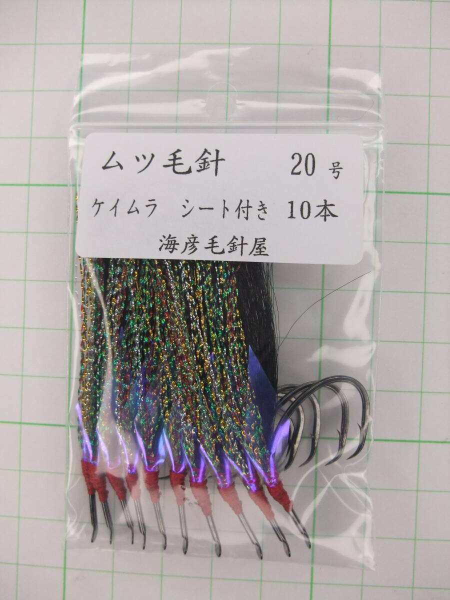 - 20KK ムツ20号毛針 黒フラッシャー ケイムラシート付き 10本セット