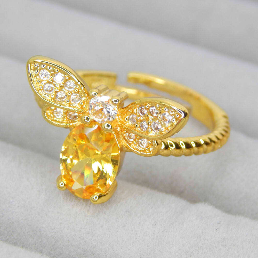 - 残り1点★新品★送料無料 ミツバチ CZトパーズダイヤモンドリング レディースアクセサリー 人気 ジルコニア シルバー925 ゴールド