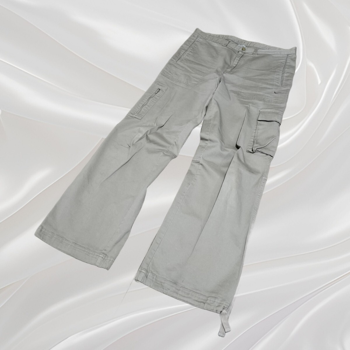 > 美品★00s OLD NIKE イージーパンツ カーゴパンツ チノパン ストレッチ ボトムス カーキベージュ レディース サイズL Y2K 希少 古着 USED
