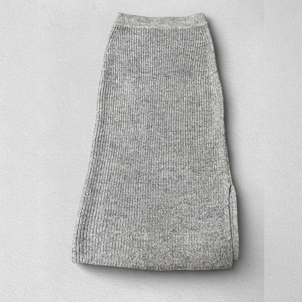 - PLST プラステ ニット タイト ロングスカート グレー系 レディースS●洗濯プレス済● スカート ニット素材 スリット入り保温 秋冬 古着/97