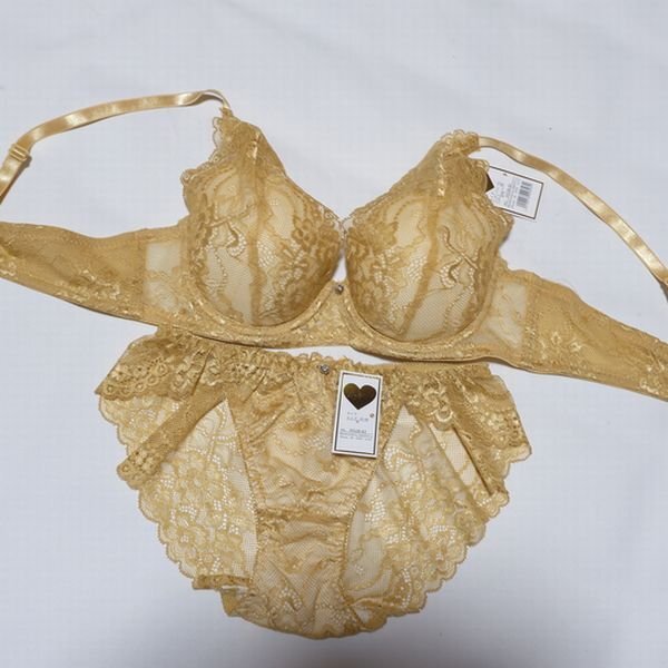 - 寄せ上Wパッド A75M 総レース ビジュー付 モールドブラ&ショーツ ゴールド