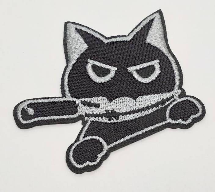 - 送料無料 猫 ネコ 包丁 ナイフ くわえ アイロン のりつき 刺繍 ワッペン アップリケ アメリカン雑貨 スマアク