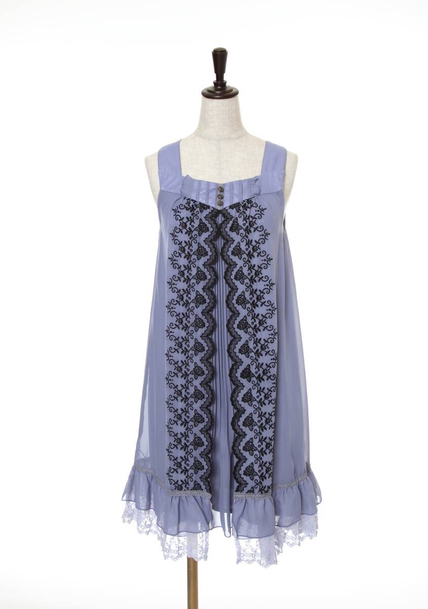 - 908◇刺繍入りAラインチュニワンピース ラベンダー axes femme アクシーズ ファム IM342X01