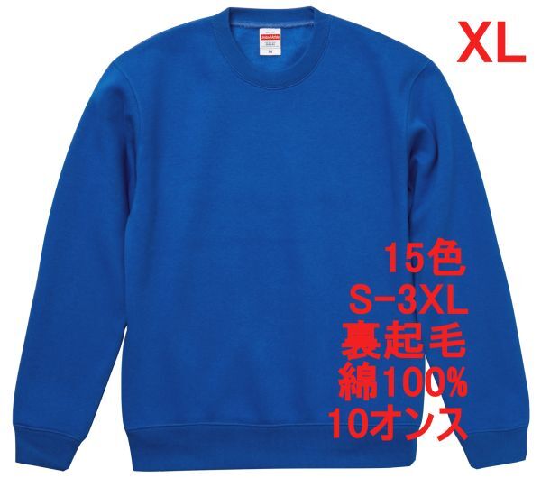 > スウェット XL ロイヤル ブルー 裏起毛 10オンス 無地 トレーナー 定番 綿 保温 丸首 クルーネック 着画 メンズ A650 2L LL 青 青色 592801