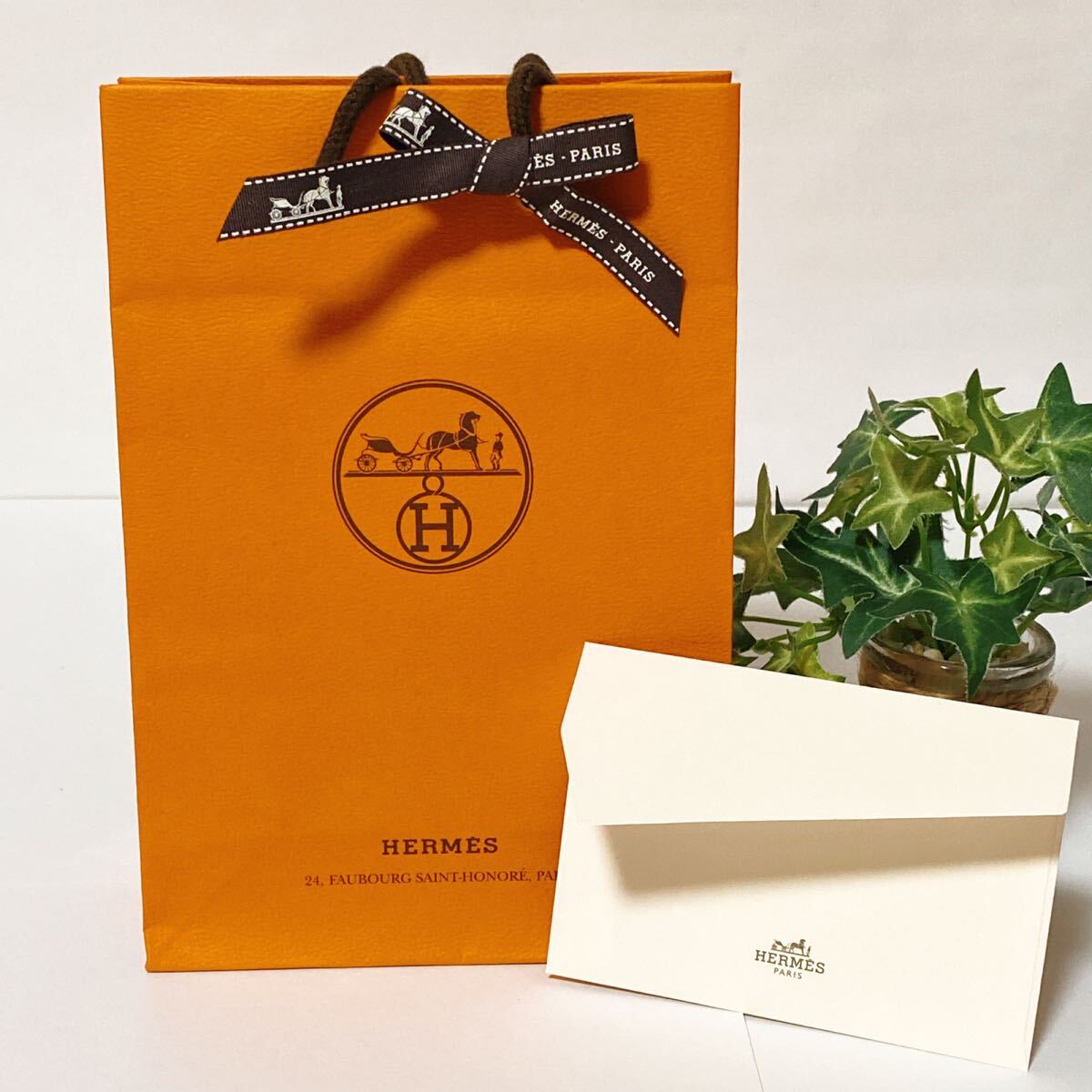 - エルメス 「HERMES」ショッパー ミニ封筒付き (4554) 正規品 付属品 ショップ袋 ブランド紙袋 小物箱サイズ 15×21×7cm 折らずに配送