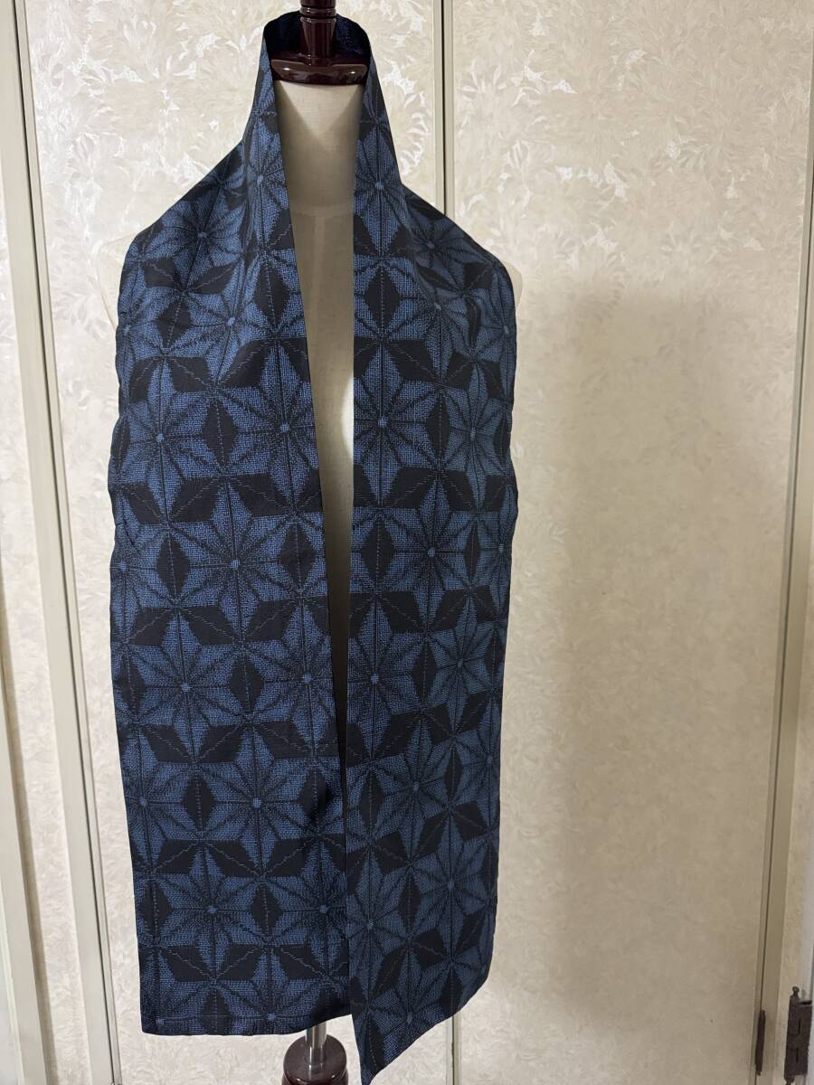- 村山大島紬 17×166cm 正絹 マフラー 麻の葉 / 襟巻 反物より 大島紬 リメイク シルク 絹 ハンドメイド 着物 着物リメイク