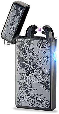 - アーク プラズマ放電式 ライター USBライター ガス・オイル不要 電子ライター 強風でも使い プレゼント 防災グッズ/ (ブラック (竜))