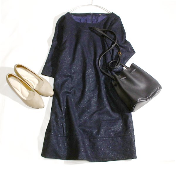 > 美品 NOLLEY'S PINK ノーリーズ ほんのりラメ 綺麗め ウール ワンピース 36号 S 秋 冬 24B12