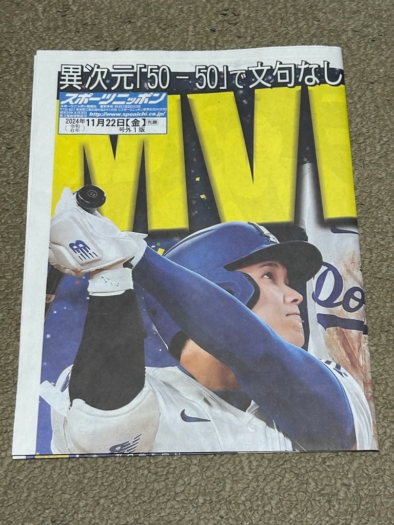 > 大谷翔平 MVP 2024年11月22日 スポニチ スポーツニッポン 号外 ワールドシリーズ ドジャース