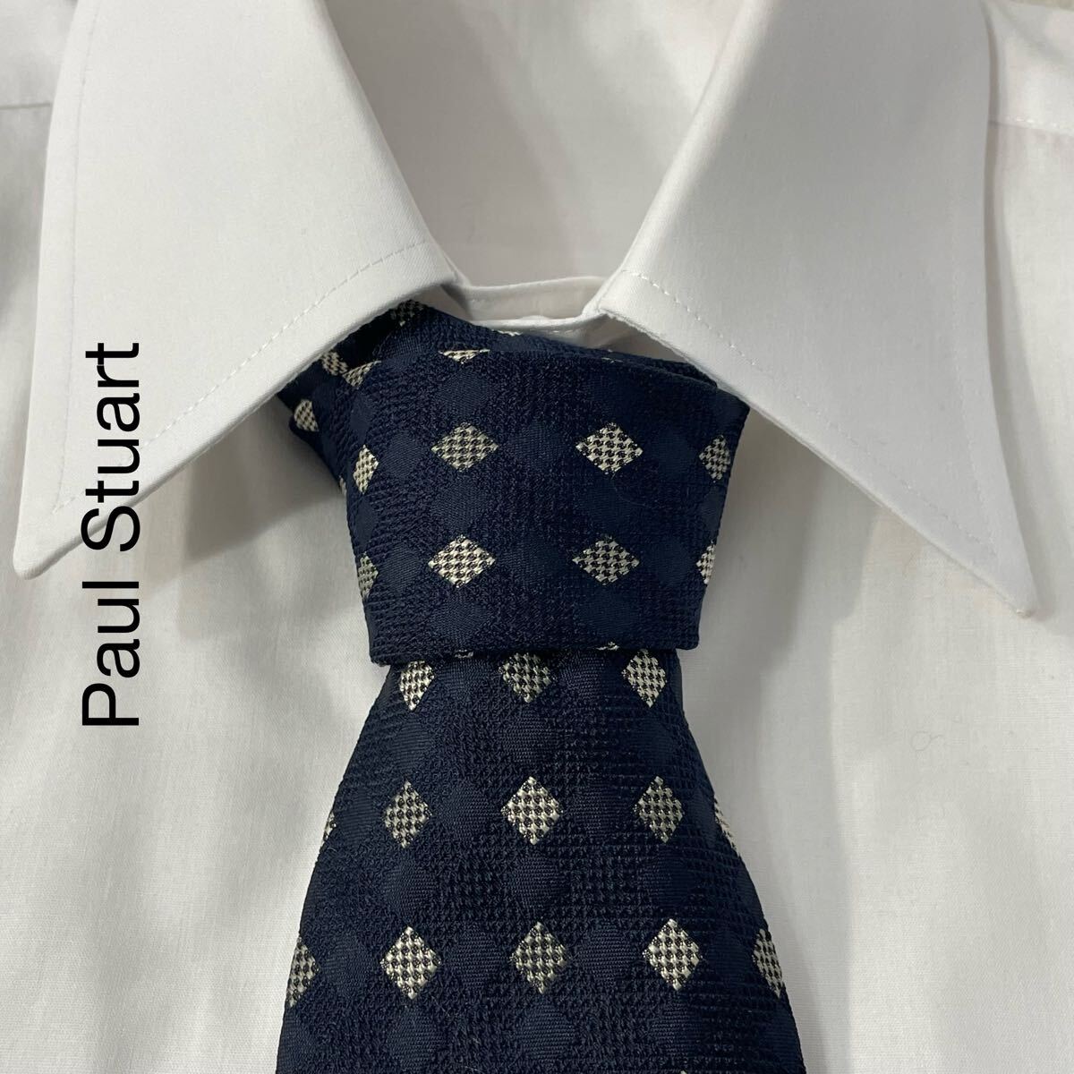 - Paul Stuart ポールスチュアート 四角 格子 ジャガード シルク ネクタイ フランス製 ネイビー TG662