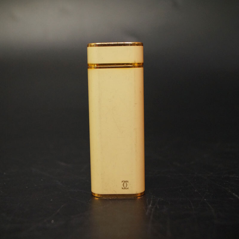 - yf11-Cartier カルティエ ガスライター アイボリー ゴールド CCロゴ オーバル ローラー 高級 喫煙グッズ 小物 喫煙具 フランス製
