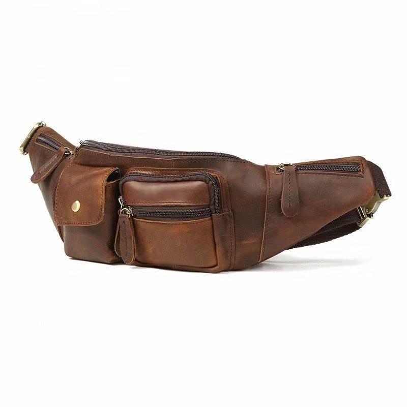 - ポケット多い 一枚牛革 ウエストバッグ メンズ 本革 ウエストポーチ ボディバッグ ワイルド風 自転車 アウトドア ブラウン