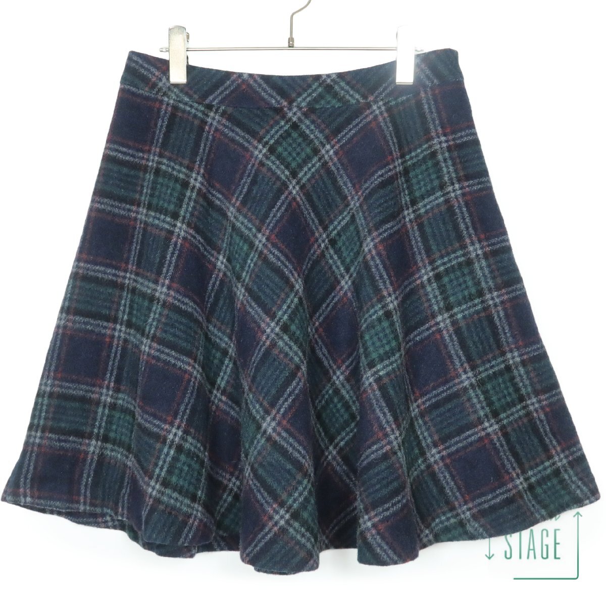 > エフデ★ フレア スカート ひざ丈 大きいサイズ13 紺×緑×MIX系 チェック柄が大人可愛い♪ あったかいウール混♪ 秋冬 z10794
