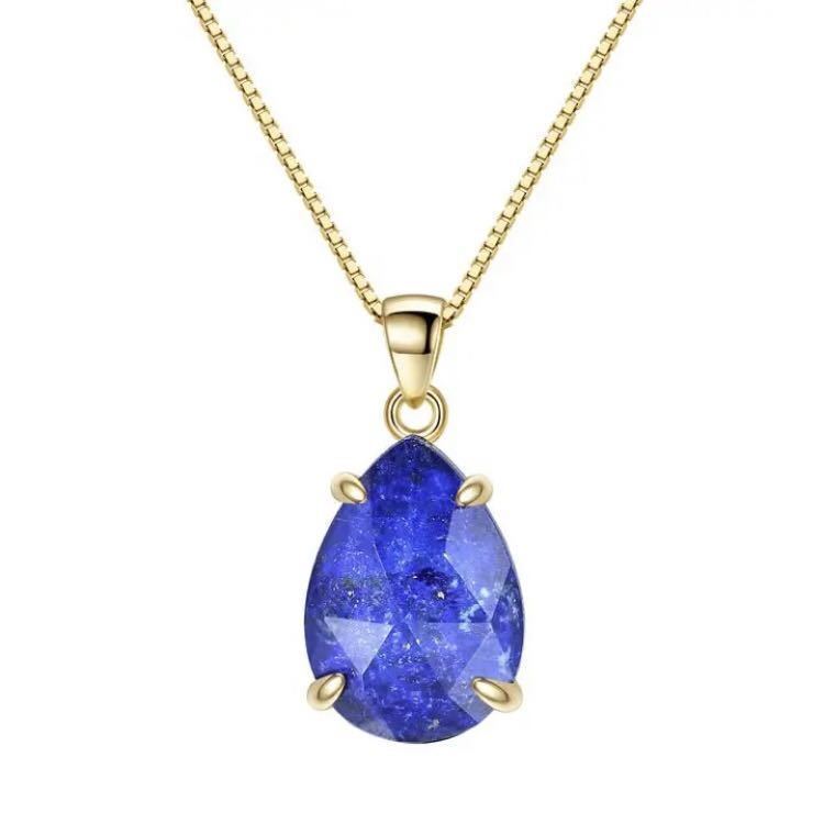 - ラピスラズリ ネックレス 12月誕生石 クリスタル 雫 天然石 18KGP
