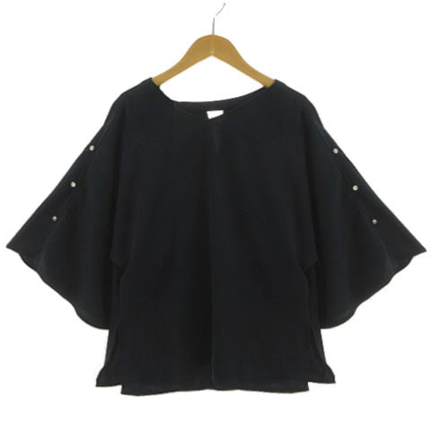 - ビアッジョブルー Viaggio Blu ブラウス Vネック 七分袖 フレアスリーブ ショルダービジューボタン 裾スリット 日本製 ブラック 黒 2